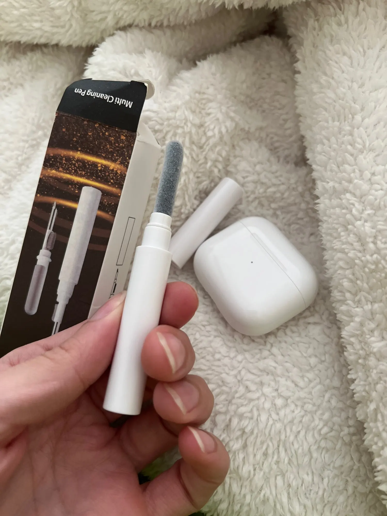 This airpod cleaning kit is the size of an ink pen and works like a dream. The pointed tip is perfect for cleaning dust and a certain yellow residue from the mesh ear tips, and the flocked sponge easily captures dust and dirt trapped in the charging case. So easy to just to throw in your bag and go. For a clean freak like me, it’s easily worth the money!